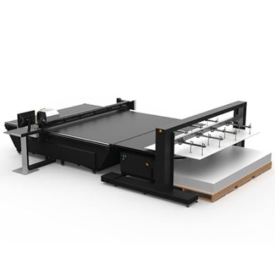 Meja potong Esko Kongsberg dirancang untuk fleksibilitas dan output tinggi. Ada banyak cara untuk mengotomatiskan bagian-bagian tertentu dari alur kerja finishing, tidak peduli materi apapun.
