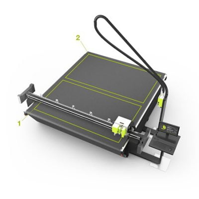 MultiZone Production memungkinkan Anda memuat dua lembar dan menggandakan kapasitas produksi di meja potong Esko Kongsberg Anda