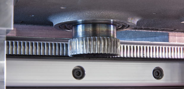 Sistem penggerak rack-and-pinion memberikan kecepatan, daya tahan dan kekuatan besar yang diperlukan untuk melalui material tebal yang padat.